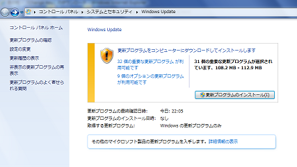 Professional64bitになったところで、スタートメニューから「すべてのプログラム」-「Windows Update」実行。