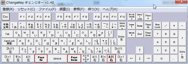 私はスペースキーの左右にある「無変換」と「変換」「右アプリメニュー」をそれぞれ「PageUp」「PageDown」「右Alt」に差し替えています。